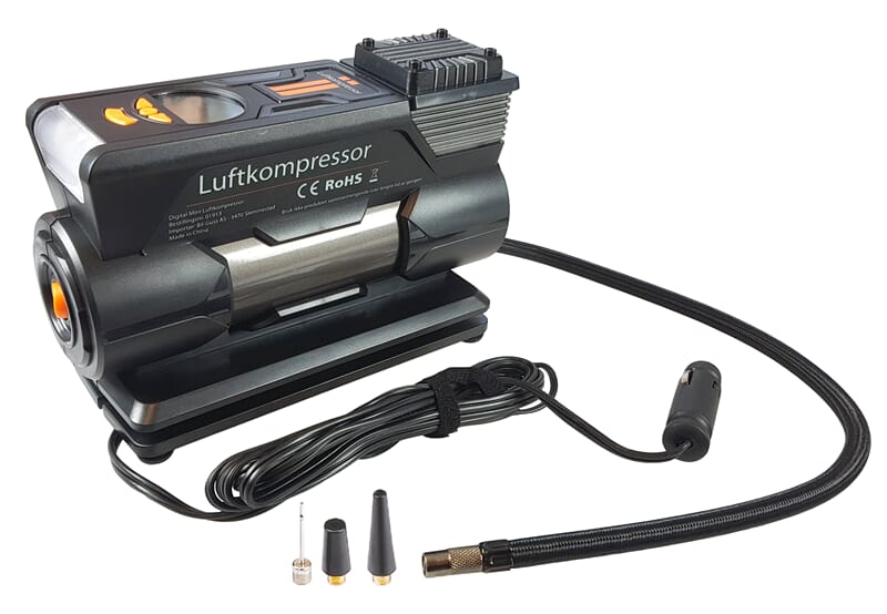 Perfekt for å pumpe opp, bildekk, sykkelhjul, baller, madrasser, badeleker og mye mer. Still inn lufttrykk på displayet og kompressoren skrur seg automatisk av når ønsket lufttrykk er oppnådd. Kan vise lufttrykk i BAR, KPA, PSI. 3 meter ledning med sigarettennerplugg. Kapasitet: 30 liter/min. Ink. 3 adaptere. 12V.