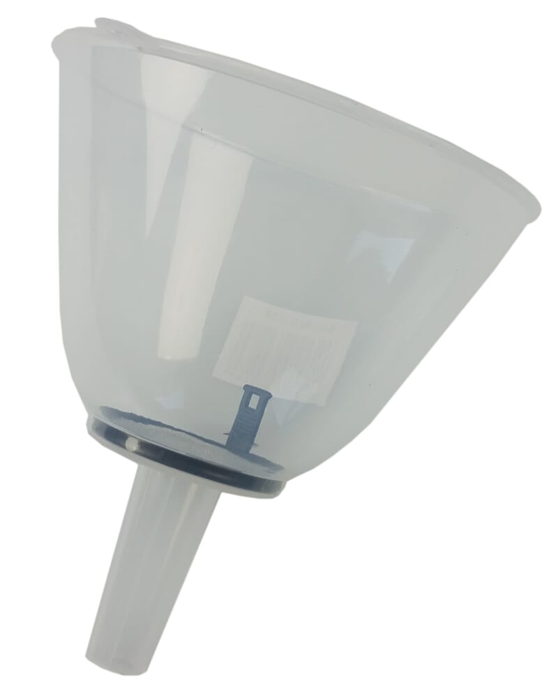 Trakt med avtagbar sil. Produsert i plast. Diameter: 13,5 cm.