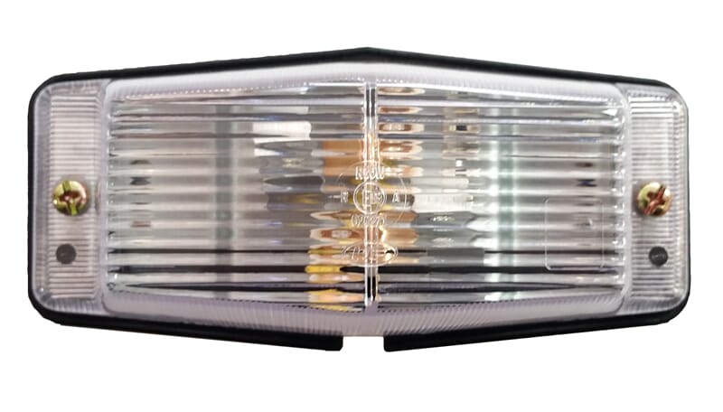 Komplett sidemarkeringslys for lastebil og buss. Farge på glass: Hvit. Med pæreholder. Pærer medfølger ikke.